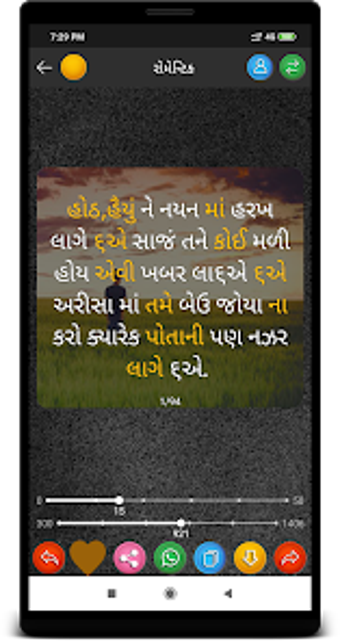 Sapna Shayari ShopによるGujarat Statusアプリは、あなたのグジャラート語ステータスと引用符のニーズに必要なものがすべて揃ったワンストップショップです。このライフスタイルアプリは無料で、Androidユーザー向けに利用可能です。このアプリには、グジャラート語ステータス、有名な引用符、伝説による格言、SMSの広範なコレクションがあります。